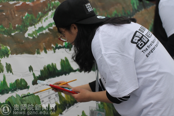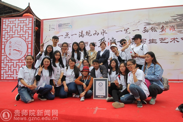作为本次艺术节的重头戏,举办方组织师生,共同挑战一项名为“世界最多人同时作画”的吉尼斯世界记录。活动现场,一幅长约250米的画卷被固定在墙板上,几百名高校学生、教师及画家共同加入绘画制作。我院学生将画笔变成手中利器,雪白画卷上的颜色变得越来越丰富,画卷中的山水也变得越来越生动精致。在长达3小时的创作后,吉尼斯世界纪录挑战大中华区认证官John Gargling宣布挑战成功。