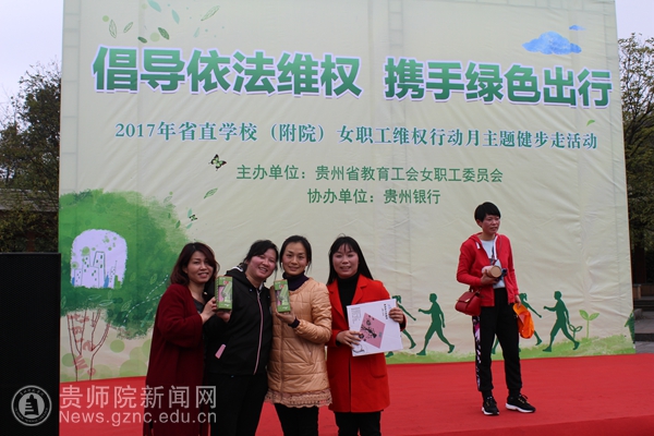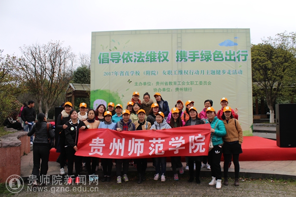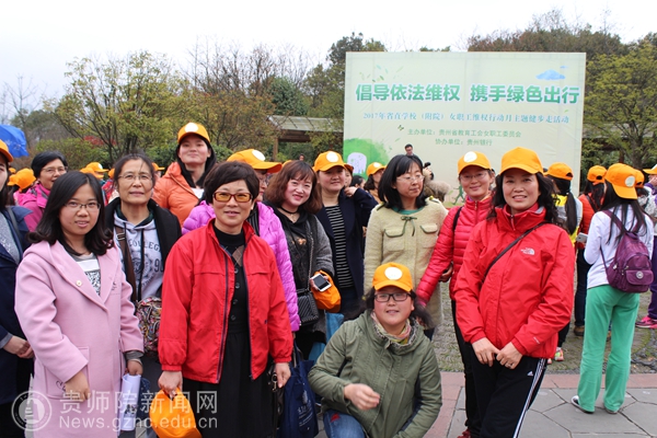 本网讯 草树知春不久归,百般红紫斗芳菲。为了进一步在广大女职工中广泛宣传普及女职工权益保护相关法律法规,弘扬法治精神,倡导“健康、绿色、低碳、环保”的生活理念,省教育工会女职工委员会在3月24日下午在观山湖公园举办“2017年省直学校(附院)女职工维权行动月主题健步走活动”。本次活动得到了全校各基层工会的支持,共有70余名老师报名参加。校党委副书记令狐彩桃、校纪委书记王之瑞前往看望运动员并全程参与本次活动。