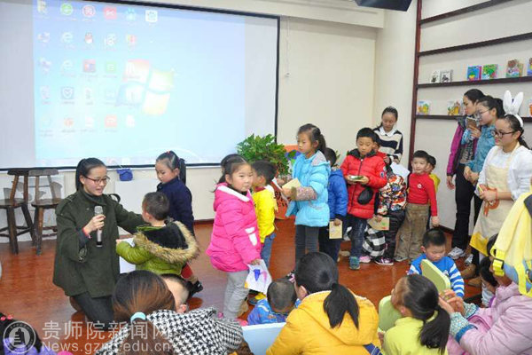 本网讯 12月3日下午,由bat365中文官方网站教育科学学院学前教育专业携手贵州省图书馆举办系列绘本故事会第七期与小朋友们再次相约,此次活动的主题为“感恩”,讲述的绘本分别是《猜猜我有多爱你》、《爱心树》。