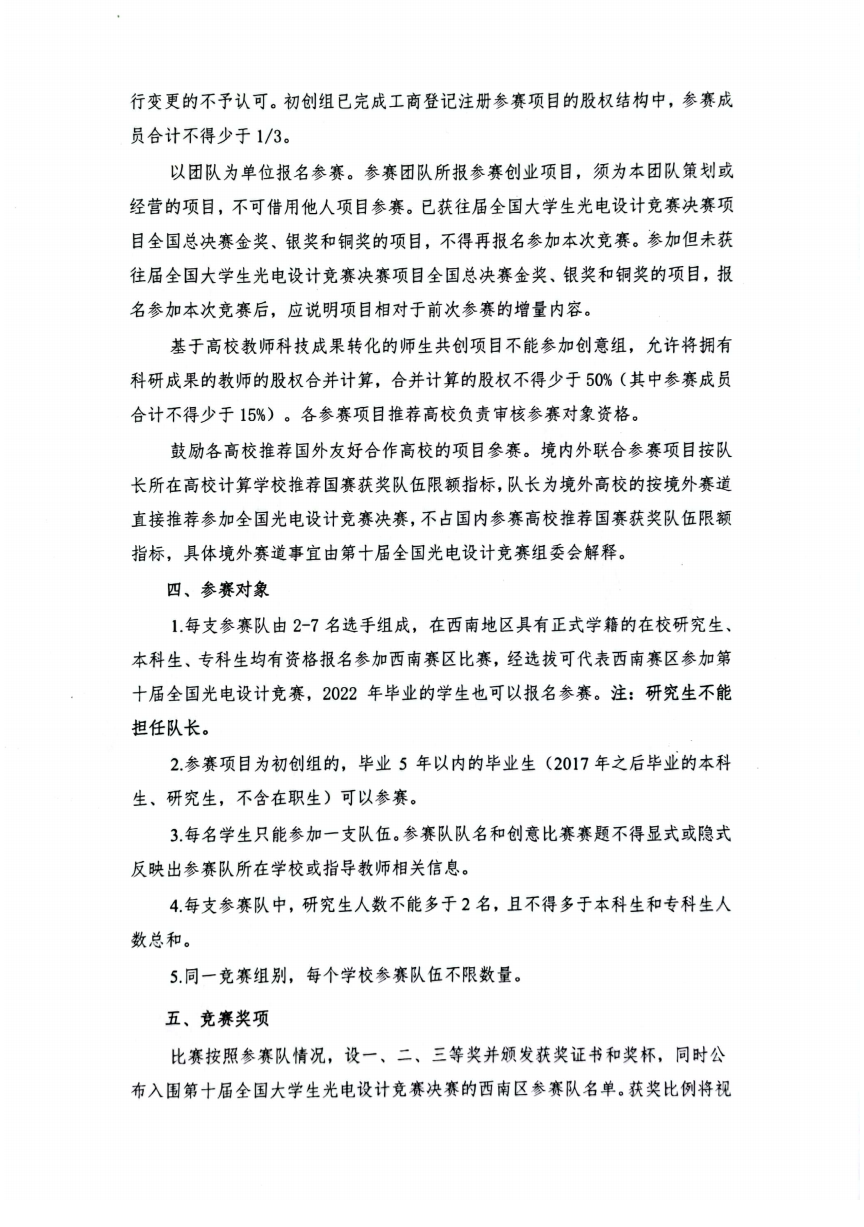 关于第十届全国大学生光电设计竞赛 西南区赛有关事项的通知 (第一轮)
