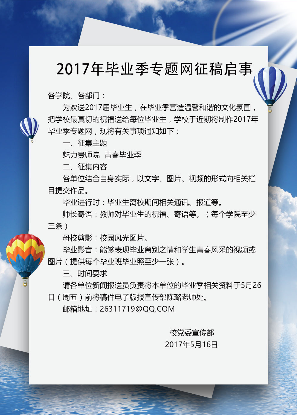 2017年毕业季专题网征稿启事