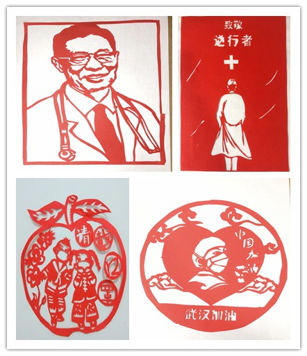 剪纸又叫刻纸,是中华民族最古老的民间艺术之一,它是一种镂空艺术,能给人以视觉上透空的感觉和艺术享受。活动一发出便得到了同学们的广泛关注和参与,大家齐上阵,全身心投入到剪纸艺术的乐趣中。中国结、红灯笼、十二生肖、年年有鱼,还有不少同学受到疫情的启发刻画出了钟南山院士、武汉加油、请戴口罩、北京天安门等令人感动、惊艳的作品,充分体现了全国人民上下一心,共同抗疫的爱国情怀。经过评委老师的认真评选,最终评选出19模具1班贺道胜荣获一等奖,19模具1班王晓丹、19焊接2班郭梦婷、19机电1班郭凯荣获二等奖,19机械8班王富强、19模具1班陈宁昊、19机电6班徐文浩、19机电6班张驰、19机电1班包丽鑫、19焊接2班李海燕荣获三等奖。