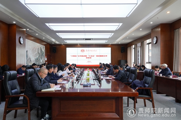 本网讯 为了全面贯彻党的二十大关于教育强国建设的战略部署,深入落实《教育强国建设规划纲要(2024-2035年)》和贵州教育大会精神,紧扣贵州战略发展需要,系统谋划未来五年高质量发展的行动纲领,3月18日下午学校在信息楼召开“十四五”工作推进暨“十五五”规划编制工作启动会。全体在家校领导出席会议,二级教学单位、党政部门、教辅部门、科研院所主要负责人参加会议。校长韦维主持本次会议并作相关工作要求。