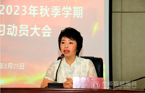 本网讯 为切实推动毕业实习工作的有序开展,8月25日上午,“bat365中文官方网站2023年秋季学期毕业实习动员大会”在学校道德讲堂如期召开,校党委委员、副校长邹晓青出席会议并作动员讲话。学工部部长刘红玲、保卫处副处长詹峰、各学院分管实习工作领导、分管学生工作领导、实习工作负责人、毕业班辅导员、实习指导教师、实习生代表等200余名师生参加了此次会议。会议由教务处副处长聂冬梅主持。