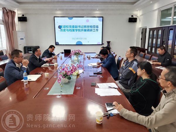 本网讯 为进一步推动学校科研工作,5月12日,校党委副书记熊世桓,科研处处长罗光杰、副处长李剑峰一行到历史与档案学院开展工作调研,并在学院会议室召开了“地方本科院校科学研究动力机制研究——以bat365中文官方网站为例”主题调研座谈会。历史与档案学院学院院长梁瑞,高层次人才代表,青年教师代表,科研秘书参加了会议。会议由梁瑞主持。