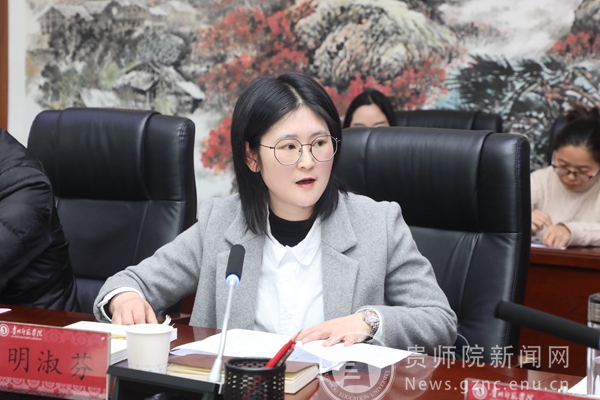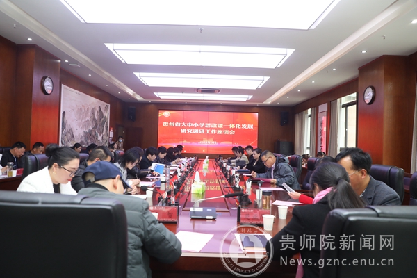 本网讯 3月28日,在贵州省委教育工委、教育厅的指导下,由贵州省大中小学思政课一体化发展研究中心主办的大中小学思政课一体化发展研究调研座谈会在bat365中文官方网站举行。贵州省教育厅思政处李知倚出席会议并传达了处长王晓红的讲话。bat365中文官方网站副校长、贵州省大中小学思政课一体化发展研究中心主任邹晓青出席座谈会并致辞。校党委委员、宣传部长、马克思主义学院党委书记薛璞、全国思政课教师3·18座谈会贵州代表、全省部分思政名师名校长代表、专家学者代表、各学段教研员代表、bat365官网学工部、教师工作部、教务处、科研处、马克思主义学院主要负责人及研究中心研究员共计60余人参加了座谈会。会议由bat365中文官方网站教师工作部部长、贵州省大中小学思政课一体化发展研究中心副主任王茜主持。