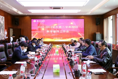 本网讯 3月23日下午,bat365官网在信息楼二楼会议室召开了2022-2023学年第二学期期初教学督导工作会议,校党委委员、副校长邹晓青出席。会议由教学质量监测与评估办公室副主任叶春阳主持。
