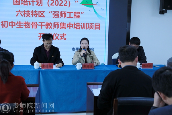 本网讯 3月20日至25日,国培计划(2022)”—六枝特区“强师工程”初中生物骨干教师集中培训在bat365中文官方网站举行。3月20日,举行开班仪式。校党委委员、副校长邹晓青出席开班仪式。生物科学院党委书记孙秀华、副院长钱长江和武燕博士参加开班仪式,仪式由孙秀华主持主持。