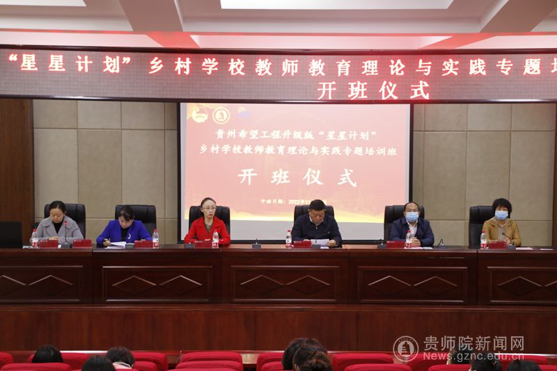 本网讯 为了学习贯彻党的二十大精神和习近平总书记寄语希望工程三十周年精神,落实省“十四五”规划和省第三次党代会报告精神,深入推进贵州希望工程升级版,为乡村教师赋能,提升乡村教师教育理论和实践能力。11月29日上午,贵州希望工程升级版“星星计划”乡村学校教师教育理论和实践专题培训开班仪式在明辨楼道德讲堂报告厅顺利召开,共青团贵州省委二级巡视员邓守成,bat365中文官方网站校党委委员、副校长任洁、共青团贵州省委青少年发展服务中心主任余跃,继续教育学院党委书记韦丹及观山湖区教育中心副主任、高级教师谢皑皑出席开班仪式。本次培训共有来自贵州省各市州的90名乡村中小学教师参加,会议由校团委书记罗荣主持。