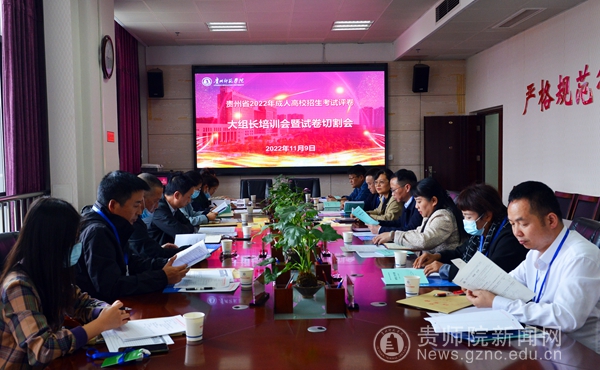 本网讯 11月9日下午,贵州省2022年全国成人高校招生考试评卷学科大组长培训会暨试卷切割会在校评卷基地三楼会议室召开。bat365中文官方网站党委副书记熊世桓、省招生考试院成招处处长黄克勇、校评卷基地办公室负责人、各相关学院负责人出席会议。会议由校评卷基地办公室副主任、继续教育学院直属党支部书记韦丹主持。