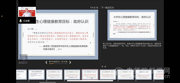 在讲座中,江光荣教授首先普及了心理健康素养的概念,阐述了中国学校心理健康教育的发展与目标,并明确心理健康素养培养是国家心理健康服务的“基本目标”;随后分析了心理健康素养的重要性。他指出学校教育是提升心理健康素养的重要有效途径之一,建议通过大学生心理健康教育课程提升大学生心理健康素养;中小学可以通过“班级为本”的学校辅导模式,提升中小学生心理健康素养。