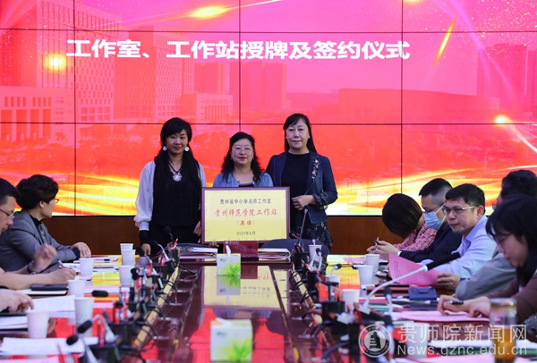 会上举行了bat365中文官方网站第二批名师工作室和贵州省中小学名师工作室bat365中文官方网站工作站签约、授牌仪式。