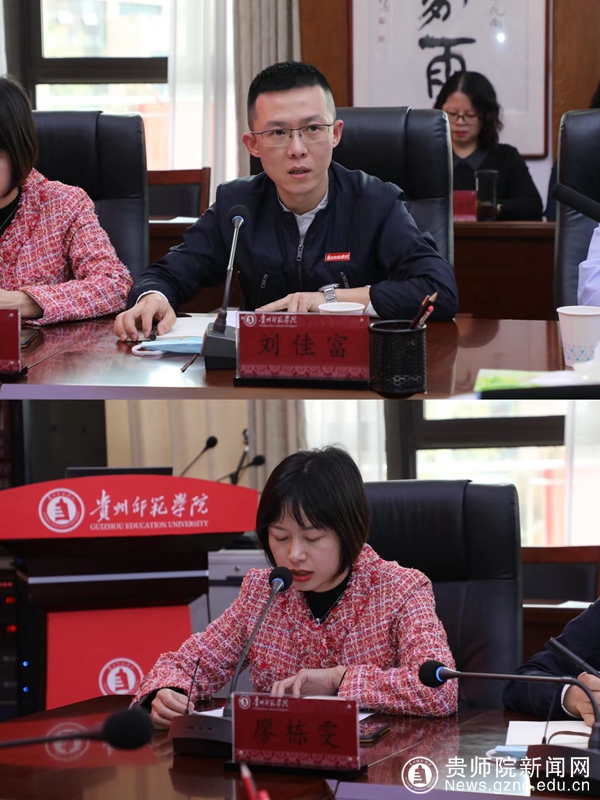 第一批名师工作室主持人代表聂森、刘高福结合《bat365中文官方网站名师工作室建设方案》,汇报工作室工作开展情况及建设思路,并表示将结合专业能力制定未来的工作计划,发挥平台的同向互补效应以及工作室的品牌效应,共同促进贵州省基础教育的发展。2021年下半年跟岗实践教师代表刘佳富进行了发言,分享了自己在跟岗实践期间的收获;2022年上半年跟岗实践教师代表廖栋雯做了表态发言。参会的名师名校长与跟岗实践锻炼的教师们围绕现阶段青年教师进行跟岗实习方面的问题进行了充分交流讨论。