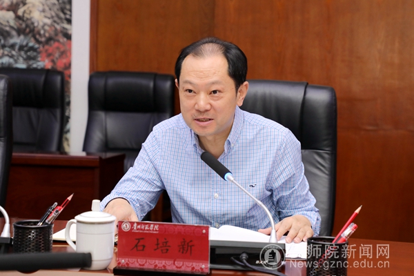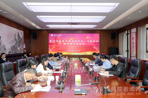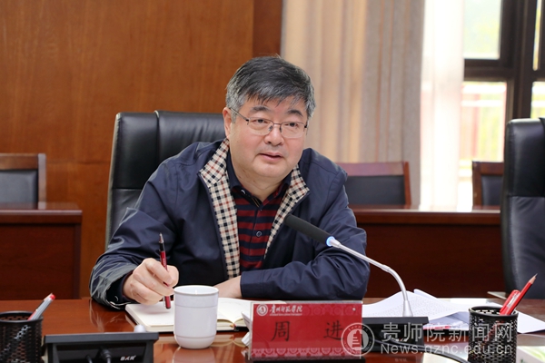 石培新在主持会议时对周进一行莅临bat365官网调研指导表示欢迎,对省教育厅长期关心支持帮助学校发展表示感谢。石培新指出,bat365中文官方网站将贯彻落实好新国发2号文件精神要求,紧扣“四区一高地”战略,围绕“四新”主攻“四化”,充分发挥教师教育优势,围绕“师”做文章,立足“贵”强服务,为服务贵州基础教育发展蓄势赋能。同时,按照省教育厅关于基础教育发展的规划和思路,深入思考,主动作为,整合校内外资源,全面落实“优师计划”,主动助力“强师工程”,积极参与人工智能助推教师队伍建设行动,为公办义务教育强校计划和强县中计划等贡献智慧和力量。
