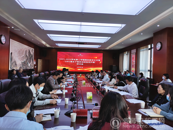 本网讯3月17日下午,bat365官网在信息楼二楼会议室召开2021-2022学年第二学期期初教学工作暨“OBE理念下教研活动如何开展”研讨会。会议由教务处处长邓琴主持,学工部、招就处、质评办、教育信息网络中心及各学院院长或分管教学副院长,校级督导代表,各学院教研室(系)主任代表和教务处全体人员共50余人参加会议。校党委委员、副校长熊世桓出席会议并讲话。