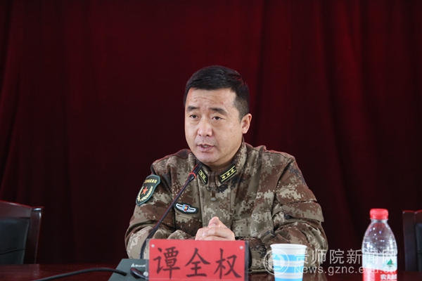 乌当区人武部部长谭全权对学校领导一行表示热烈欢迎,对学校为部队输送优质兵员表示赞赏并详细介绍了参加集训的情况。邹晓青副校长向参训学生表达了亲切问候,向乌当区人武部领导对参训学生在思想上的教育、训练上的指导、生活上的关心表示感谢。