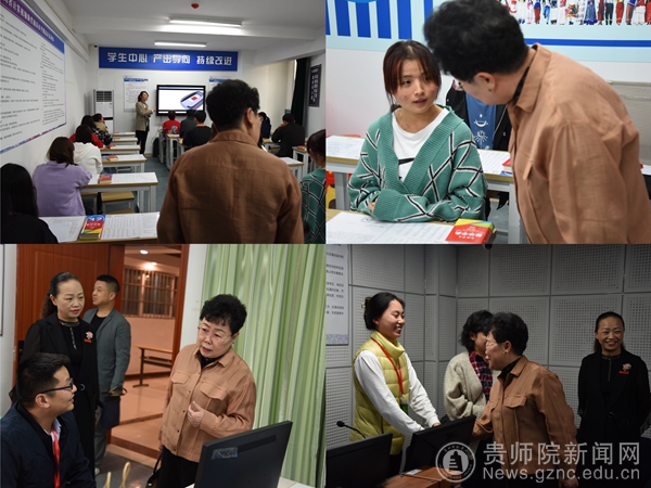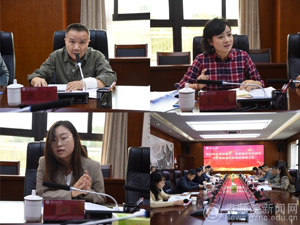 会上,贵州省普通话培训测试中心负责人、检查组副组长杨震介绍了专家组成员以及本次检查的主要目的。邓琴从基本保障、测试规范、宣传普及等三个方面就bat365官网普通话水平测试站的工作情况进行汇报,并提出了bat365官网在语言文字达标创建、普通话教学实训软硬件建设方面的规划,表达了bat365官网力争申报国家语言文字推广基地的期待和决心。专家组认真查看了bat365官网机测工作相关资料,邓琴、陈欣、郑颖以及教务处综合科科长吴娇对专家组提出的问题进行了一一解答。