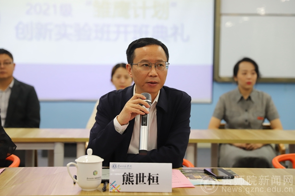本网讯 10月11日上午,bat365官网2021级“雏鹰计划”创新实班开班典礼在求真苑尚行楼209室举行,副校长熊世桓出席。中国科学技术大学教授、创新创业学院名誉院长陈旸与中国科学技术大学教授江俊通过视频传达致辞,学工部部长刘红玲,教务处处长邓琴,招生就业指导处处长肖湘萍,校团委副书记罗荣参加本次开班典礼。参加开班典礼的还有入选实验班的2021级30名新生和2020级实验班二次选拔的2名学生,创新实验班学生代表,任课教师代表,创新创业学院全体教师。创新创业学院执行院长杜宏博主持本次开班典礼。
