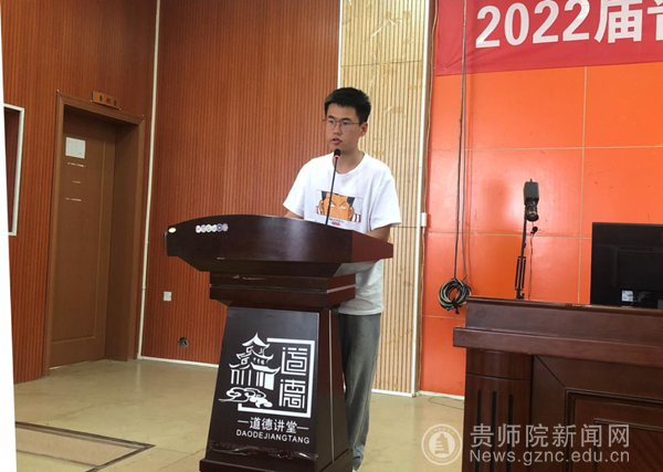 学员代表文学与传媒学院刘桂兵同学作为学员代表进行发言,他结合自身经历与大家分享了考研复习的规划和小技巧。他认为,考研学习之道,贵在坚持,要有足够的自信和勇气,在刻苦学习的同时也要锻炼身体、劳逸结合。