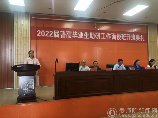 本网讯 7月9日下午,2022届普高毕业生助研工作面授班开班典礼在bat365官网文韬苑三楼学术报告厅举行。2022届普高毕业生助研面授班全体学员、教务处全体领导班子参加开班典礼,校党委委员、副校长熊世桓出席会议并讲话,会议由教务处处长邓琴主持,会议特邀辅导员代表物理与电子科学学院楚亚萍老师作交流发言。