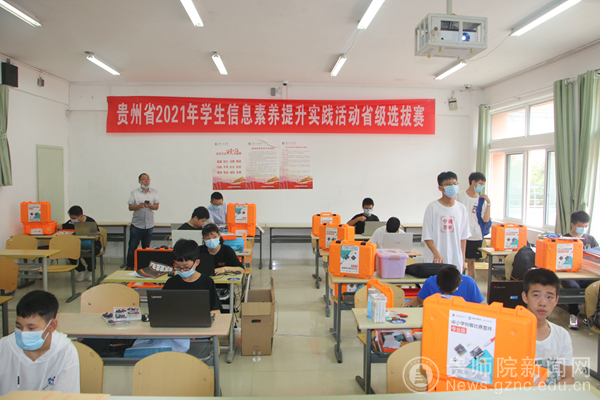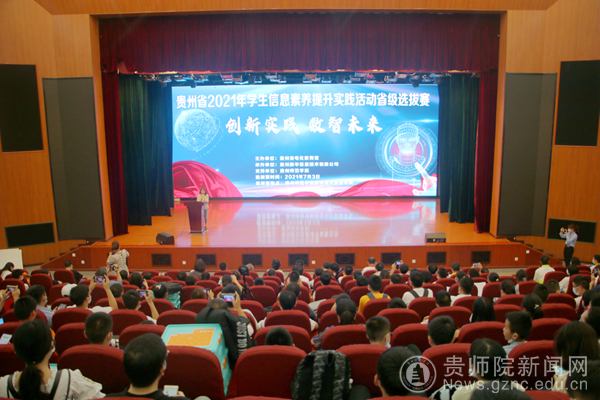 本网讯 为推动我省中小学信息技术教育工作不断深入,提升学生信息素养,2021年7月3日,由贵州省电化教育馆主办,bat365中文官方网站、贵州振华信息技术有限公司承办的贵州省2021年学生信息素养提升实践活动省级选拔赛在bat365官网举行。选拔赛开幕式于7月3日上午在逸夫楼演播厅举行,贵州省电教馆馆长崔华、副馆长刘洁、bat365中文官方网站副校长熊世桓、数学与大数据学院院长左羽等领导出席开幕式,贵州省电教馆各科室负责人、bat365中文官方网站数学与大数据学院相关负责人、来自全省各市(州)中职、中小学参赛学生及指导教师、全体裁判员、志愿者等300余人参加了开幕式。