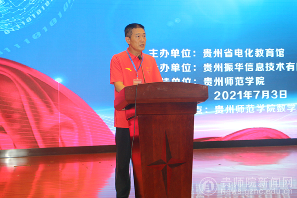 贵州省电教馆馆长崔华代表教育厅讲话,他指出国家正在加快实施教育信息化2.0行动计划,以教育信息化全面支撑和引领教育现代化。为全面建设社会主义现代化国家、实现第二个百年奋斗目标提供坚实的人才和智力支撑。本次活动旨在为全省广大师生搭建一个拓展视野、分享智慧、展示风采的舞台。相比往年,今年的活动呈现出三个方面的特点:一是活动名称更应景。更加突出信息素养提升这一主题,更加注重培养学生科技创新精神和实践能力。二是参赛人员更广泛。参加本次现场赛的学生涵盖小学、初中、高中(含中职),总人数创历年新高,这在当前疫情防控的背景下,更难能可贵,凸显了各地对这项工作的高度重视以及广大学生会用、乐用、善用信息技术进行学习的常态。三是活动形式更多元。本次选拔赛含创客、人工智能、机器人等五个项目,大赛内容相比往年更加丰富。他指出组织竞赛是形式,培养学生是核心,此次选拔赛不仅是一场比赛,更是一次展示交流学习的机会。希望通过比赛,让参赛学生展示自我、分享体会、收获经验、引发思考、推动工作。希望同学们发扬拼搏精神、凝聚团队力量,赛出风格、赛出水平,并通过比赛分享心得、结下友谊。各位指导老师要以本次活动为载体,充分发挥参赛选手的示范引领作用,激发更多学生参与活动的积极性,进一步扩大赛事的覆盖面和影响力。