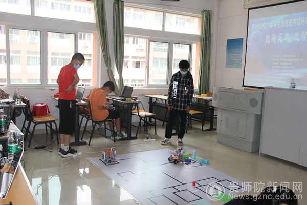 开幕式结束后,在bat365官网志愿者的带领下,参赛选手到致远楼四楼参加比赛。本次比赛分创客、人工智能、机器人三个大组,每个大组又分为小学、初中、高中组进行比赛。有来自贵阳市、安顺市、黔南州、黔西南州、黔东南州、铜仁市、毕节市等市(州)中小学生200余名参赛选手参加角逐,参赛选手中年龄最小的7岁,涵盖小学一年级到高中三年级的学生。参赛选手上午进行设备调试和作品创作,下午进行正式的比赛及答辩等环节。比赛精彩、激烈。比赛结束后分数字创作、程序设计、创客、人工智能、机器人5个类别分别评选出一、二、三等奖,并推选出代表贵州参加全国比赛的选手。