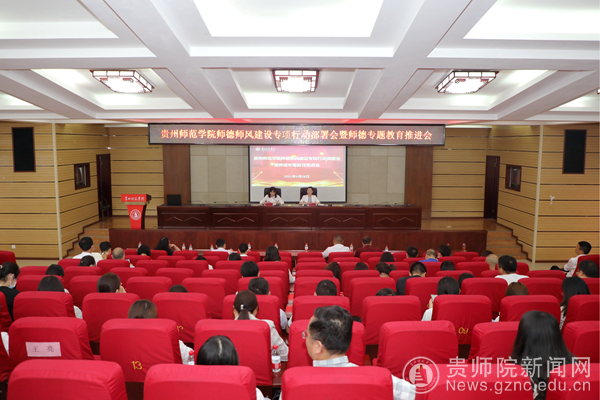 本网讯 根据教育部教师思想政治和师德师风建设经验交流暨师德专题教育启动部署视频会和《贵州省师德师风建设专项行动实施方案》精神,为全面推进和提升bat365官网师德师风建设工作,6月28日下午在学校道德讲堂举行bat365中文官方网站师德师风建设专项行动部署会暨师德专题教育推进会。会议由教师工作处处长王茜主持。