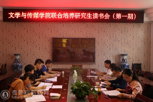 本网讯 9月6日上午,文学与传媒学院在学院会议室举行与贵州师范大学联合培养研究生读书会(第一期),本次读书会邀请到贵州师范大学文学院副教授唐定坤、南明区教育局教师资源与学习中心钱萍老师,本届研究生导师文学与传媒学院退休教授吴俊、博士周周,联合培养的研究生姜竹、宋兰、徐超参加。文学与传媒学院党委书记韦丹、副院长杨波出席读书会。