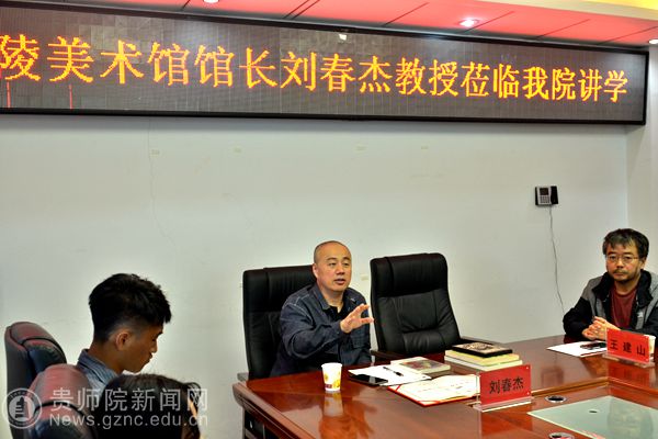 本网讯 5月21日上午,应bat365中文官方网站美术与设计学院的邀请,金陵美术馆馆长、南京艺术研究院院长、中央美术学院国际学院版画联盟执行委员会副主任刘春杰教授在明义楼141室举行了题为《版画的广阔空间》的讲座。讲座由美术与设计学院院长聂森教授主持,前来参与的还有贵州民族大学美术学院院长、贵州省美术家协会副主席王建山教授,美术与设计学院副院长路统宽副教授、邓林博士以及贵州民族大学夏玉清副教授。美术与设计学院教师李南川、杨旻子、王晓芳、杨钢等部分教师以及学生聆听了讲座。