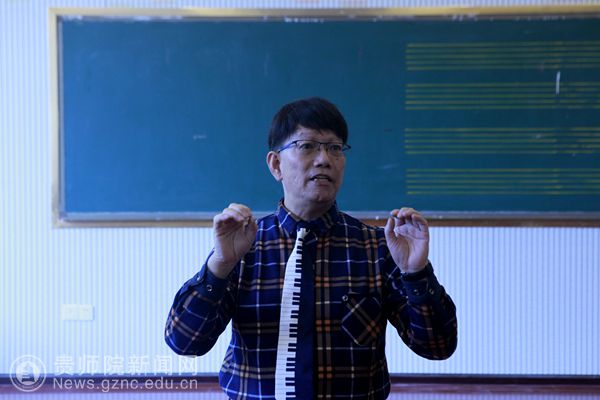本网讯 11月26日下午,香港特别行政区著名中小学音乐教育专家區品贤先生在bat365中文官方网站音乐舞蹈学院合唱排练厅举办主题为“合唱指挥基本法”的讲座,本次讲座由bat365中文官方网站音乐舞蹈学院党委副书记朱晨刚主持,贵阳市乌当区全体中小学音乐教师和bat365中文官方网站音乐舞蹈学院音乐学专业部分师生现场听取了讲座。本次讲座是“2018中国-东盟音乐舞蹈教育学术研讨会”系列讲座的其中一场。