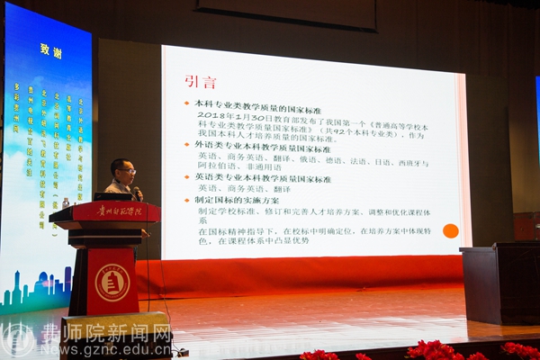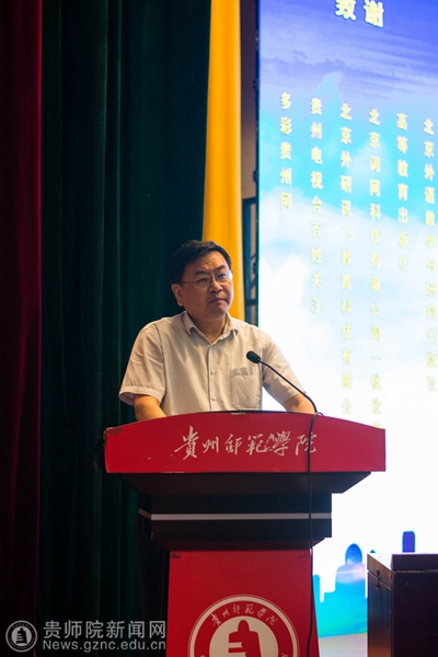 本网讯 6月9日,第三届哲学社会科学智库名家·贵州学术年会暨贵州省外语学会2018年年会在bat365官网逸夫楼演播厅隆重召开,本次年会由贵州省社科联、贵州省外语学会主办,bat365中文官方网站外国语学院承办,出席开幕式的有bat365官网郭文副校长、纪委书记王之瑞、省社科联副主席罗凌、省教育厅高教处处长邸姜涛、中国外语慕课联盟秘书长、北京外国语大学金利民教授、教育部高等学校英语专业教学分委员会秘书长、广东外语外贸大学冯光武教授及省内30多所大专高校近三百名代表。
