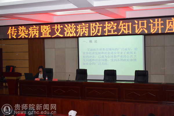 本网讯 6月7日下午,为保障校园公共卫生安全,进一步做好传染病预防教育工作,提高学生的自我保护意识和能力,后勤处和学工部联合邀请乌当区疾病预防控制中心杨亚玲医师,在道德讲堂举办了以“校园传染病暨艾滋病防控”为主题的知识讲座。各学院专职辅导员、医保专管员以及学生代表共计240余人参加。后勤处副处长舒红琴主持了讲座。