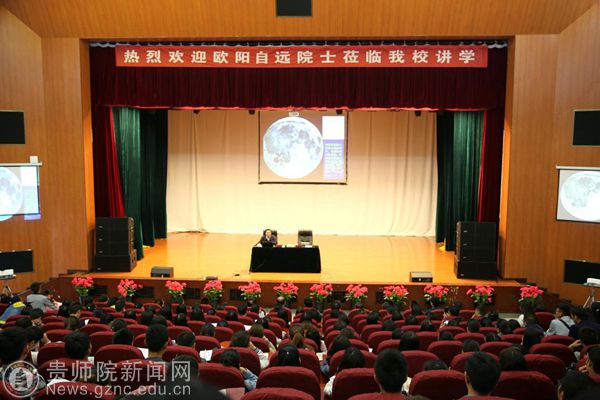 本网讯 为了营造浓厚的科学研究氛围,拓展全校师生的学术视野,提升bat365官网人才培养的质量。10月29日下午,我国著名天体化学与地球化学学家、中国科学院院士、发展中国家科学院院士、国际宇航科学院院士、中国探月总工程首席科学家,被誉为“嫦娥之父”的欧阳自远院士应化学与生命科学学院邀请,在逸夫楼演播厅进行了 “中国的探月梦”专题报告。校长郁钟铭、副校长令狐荣锋出席,科研处处长金凤、化学与生命科学学院全体院领导、物理与电子科学学院、地理与旅游学院领导及500余名师生聆听了此次报告会,报告会由郁钟铭校长主持。