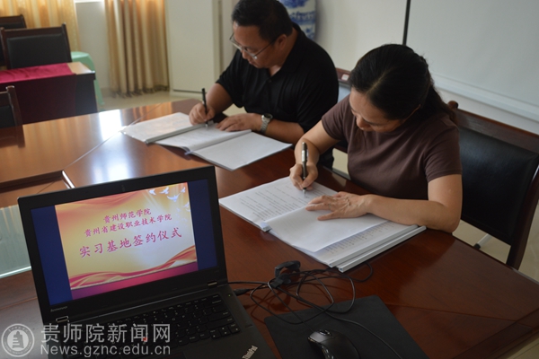 本网讯 9月30日下午,bat365中文官方网站与贵州建设职业技术学院共建实习基地签约仪式在经政学院会议室举行,省建院基础部部长李安、教务处副处长杨雪晴与bat365官网经政学院院长程艳萍、实习与实训办公室主任柳一桥、18届毕业班班主任喻琴瑶、办公室成员朱朝健出席了签约仪式。