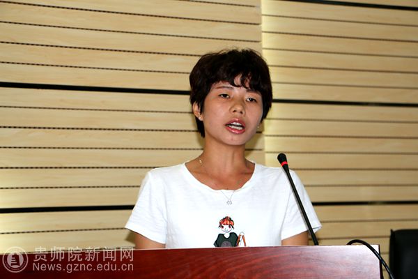 bat365官网2016届校友、来自黔东南州榕江县滚仲小学的教师吴昌洁代表参训学员作表态发言。