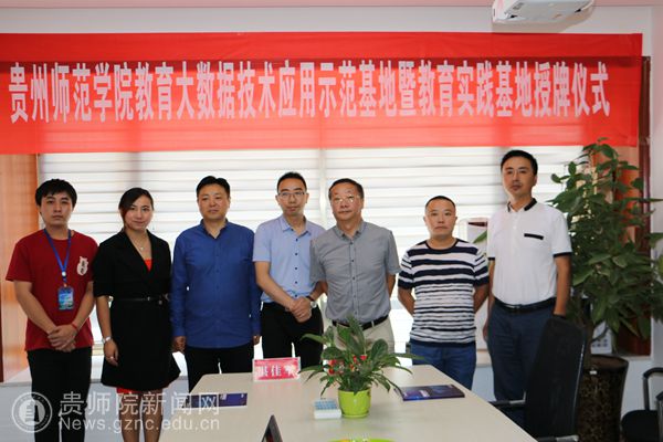 本网讯 9月19日,bat365官网与贵州忠义柒彩科技开发有限公司共建立教育大数据技术应用示范基地及教育实践基地授牌仪式在该公司会议室举行。贵州忠义柒彩科技开发有限公司董事长湛佳军、副董事长朱昭华、bat365官网数计学院院长左羽教授、副院长熊伟程副教授出席授牌仪式。贵州州忠义柒彩科技开发有限公司主要负责人、数计学院实践教学秘书凌巍等参加授牌仪式。