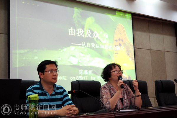 本网讯 6月8日下午,心理健康教育与咨询中心邀请高级国家一级企业培训师、人才资源一级管理师、兼任成都铁路局党(干)校特聘教师、贵州大学管理学院EDP中心特聘教师陈慕恒到bat365官网为大学生进行题为“由我及众——从自我认知到社会融入”的学术讲座。该讲座在道德讲堂举行,教育科学学院心理学专业学生,全体心理委员及各学院的心理学爱好者参加了本次讲座,讲座由心理健康教育与咨询中心主任宛蓉主持。