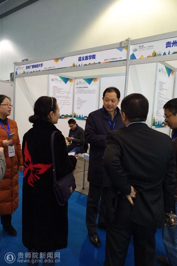 本网讯 清明时节雨纷飞,又是一年人博会。3月25日,以“广聚天下有志英才,共推贵州同步小康”为主题的第五届中国贵州人才博览会在筑开幕。校党委书记石培新、副校长令狐荣锋出席开幕式并对bat365官网引才工作予以指导。校长李存雄亲临评审现场对评审工作进行指导。开幕式结束后,令狐荣锋还受邀中国教育在线记者的采访。