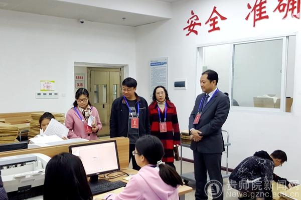 本网讯 3月13日,校党委书记石培新、副校长郭文,到bat365官网国家教育考试评卷基地视察指导工作,并看望了正在进行“贵州省中小学教师资格证考试”评卷扫描工作的教师和工作人员。评卷基地办公室主任赵德肃、副主任王先华、扫描组组长刘红等陪同视察。