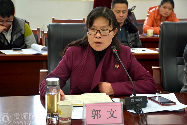 最后,副校长郭文作讲话,她首先代表学校对省名师工作室和教师专业发展学校各位专家对bat365官网教师培养工作的大力支持表示感谢,同时,提出以下三点要求:第一,加大管理,提高质量。职能部门、二级学院、教师个人要明确责任,教师工作处主要是对培训工作的宏观管理,起引导、指导、协调的作用,搭建bat365官网与名师、名校长学校联系的平台;其次是各二级学院要加强管理,积极主动与跟岗学校交流、沟通;最后是跟岗教师要转变观念,将“要我培”转变为“我要培”,做到了解基础教育,研究基础教育,服务基础教育;第二,加强总结,加大研究。加强对跟岗内容、方式、路径、评价方式等方面的研究,在研究的基础上做好总结工作,积极探索协同发展体制、机制;第三,加大合作,协同发展。立足于学校,通过与各名师、名校长工作室学校的合作,形成优势互补,互利共赢,同时要增强对基础教育服务的能力,为地方经济发展,为贵州经济发展服务,服务基础教育、引领基础教育,形成职前职后一体化