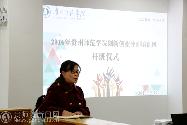 最后,郭文在讲话中指出:(一)大学生创新创业教育工作是教育部高度重视的一项工作,也是学校转型发展中的重中之重;(二)学校将创新创业教育贯穿人才培养的全过程,创新创业导师和其他课程教师一样需要基本的教学技能,业务培训是创新创业教师职业发展的必要途径;(三)学校高度重视此次培训,全体参训学员要珍惜机会,合理安排好培训和工作与生活,全身心投入学习,并在学习中发挥团队的智慧和力量,深度交流和研讨,各教学单位和职能部门牵手联动构建协同育人机制,为学校2017年开设创新创业教育课程和下一步开创大学生创新创业工作新局面奠定良好基础。