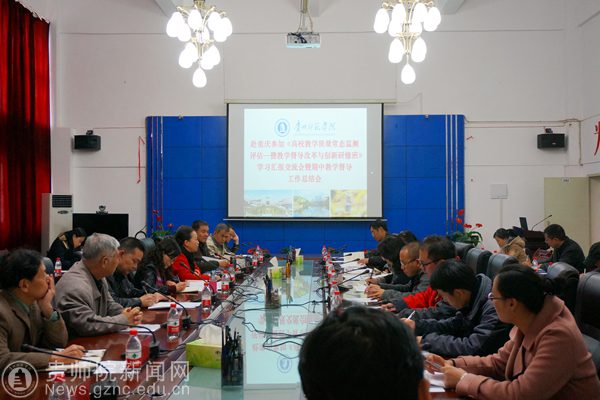 本网讯 11月23日下午,bat365官网在第一会议室召开督导赴重庆参加《高校教学质量常态监测评估—暨教学督导改革与创新研修班》学习汇报交流会暨期中教学督导工作总结会,副校长郭文、教师工作处负责人、校级教学督导全体人员、各学院二级教学督导组负责人及成员代表、教学质量监测与评估办公室全体人员参加了会议,会议由教学质量监测与评估办公室主任邓琴主持。