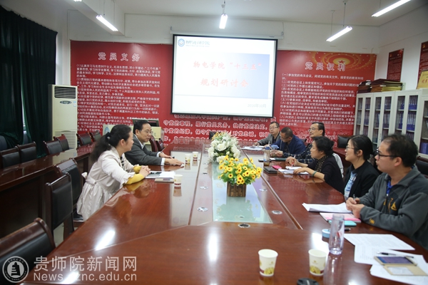 首先、物电学院院长周筑文就“十三五”规划的编制工作进行汇报,他重点就人才培养模式(四结合)和学科建设、专业建设、师资队伍发展等方面做了详细介绍。令狐荣锋充分肯定了我院在“十三五”规划的亮点,他指出:“十三五”规划是引领学院未来五年发展的纲领性文件,编制好规划意义重大,在规划编制过程中,要紧紧围绕深化人才培养模式改革、全面推进转型发展、基层党建等重大问题。要通过研究讨论,集思广益,凝心聚力,共谋发展。接着姚处长接着提出几点建议:1.人才培养模式、创新创业和大学生科技园结合起来做大做实,2.尽量将物电学院“十三五”规划专业发展和贵州平塘射电天文望远镜(FAST)结合起来。