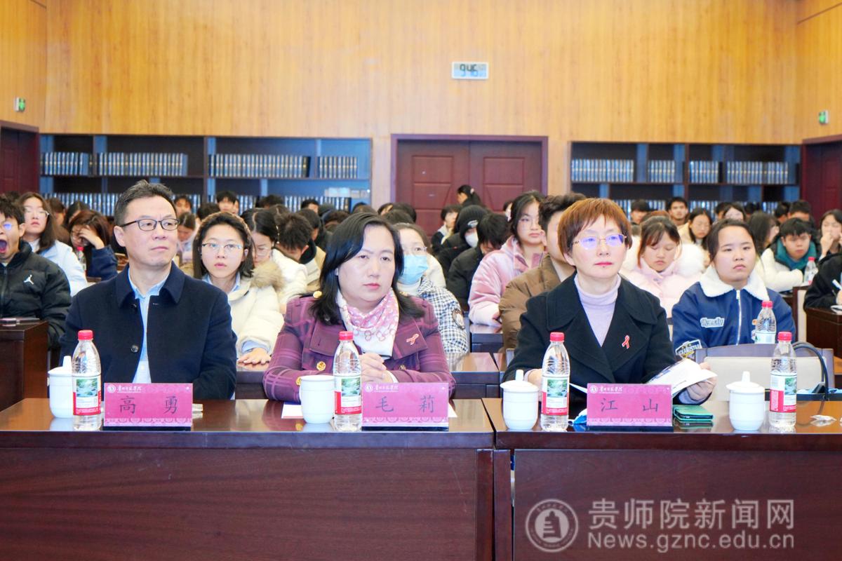 本网讯 12月1日是第38个世界艾滋病日。为进一步加强校园艾滋病防治宣传教育,12月2日,以“知‘艾’防艾,健康同行”为主题的艾滋病防治知识专题讲座在印山书院山骨讲堂举行。此次讲座由贵州省总工会女职工委员会主办,贵州省教育工会承办,bat365中文官方网站协办。贵州省总工会党组成员、副主席、女职工委员会主任毛莉,省委教育工委委员、省教育工会主席江山等领导亲临现场指导工作。