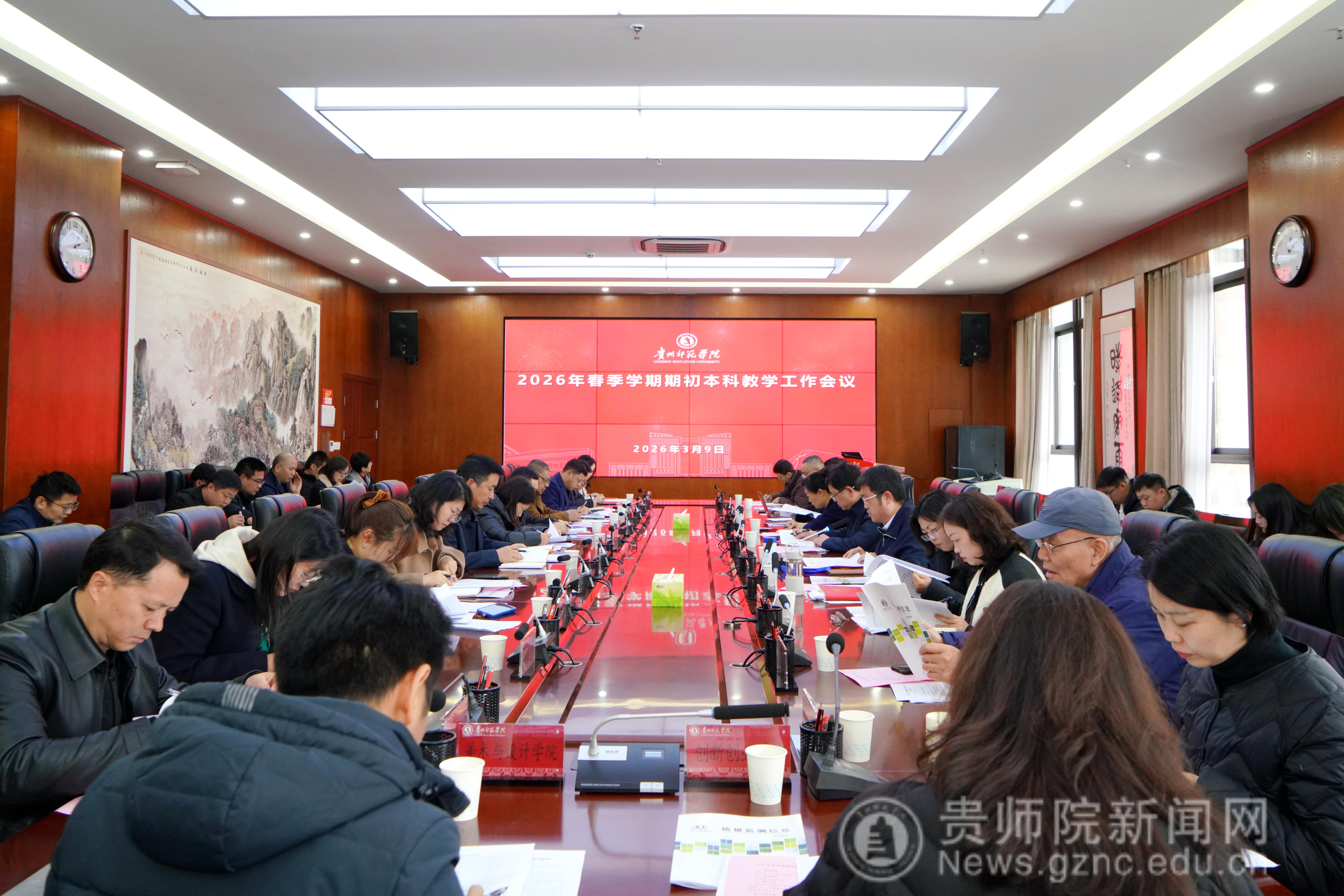 本网讯3月9日,bat365官网2026年春季学期期初本科教学工作会议在信息楼二楼会议室召开。校级教学督导,教务处、学工部、招就处、质评办、网络中心、心理健康中心主要负责人,各学院院长及分管教学副院长,教务处全体人员参加会议。会议由教务处处长杜宏博主持。校党委常委、副校长潘运出席会议并讲话。