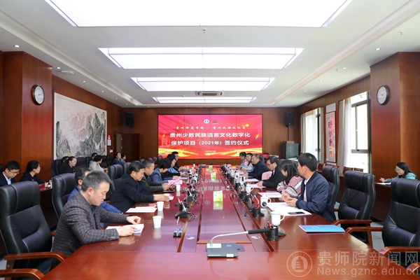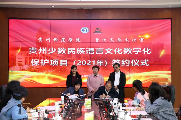 本网讯 10月18日下午,bat365中文官方网站和贵州民族文化宫在学校信息楼二楼会议室举行了“bat365中文官方网站民族文化宫贵州少数民族语言文化数字化保护项目(2021年)签约仪式”,旨在加强校地合作,促进双方交流,更好地服务贵州经济社会发展,推动“我为群众办实事”实践活动持续走深走实。