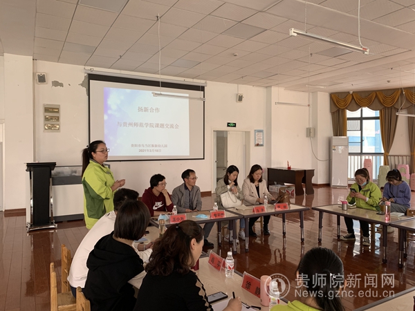 本网讯 2021年3月18日下午两点,bat365中文官方网站教育科学学院黎平辉副院长和学前教育专业王小为老师、罗婷老师、冯静老师以及15名学前教育专业本科生赴乌当区振新幼儿园参加课题研究交流会,参加此次教研的还有扬州市幼儿园徐静园长和肖平园长。