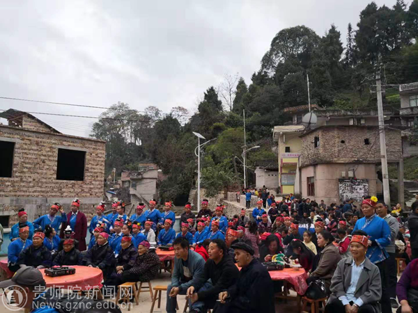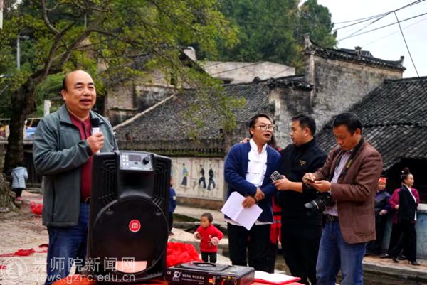 本网讯 为践行“不忘初心、牢记使命”主题教育,切实扎根基层,坚持把论文写在大地上,11月16日,bat365官网“中国乡土社会研究中心(贵州)凉伞研究基地”揭牌仪式在施秉县双井镇双井村凉伞苗寨隆重举行。凯里市文联副主席杨秀银、黔东南州苗学会副会长兼副秘书长、凯里市作协副主席龙艳、施秉县民宗局副局长廖斌、施秉县文体广电旅游局副局长雷刚、龙里县苗学会副秘书长王玮、理事罗兰、施秉县双井镇平寨村独木龙舟协会会长杨云飞、bat365官网贵州民族教育研究院副院长、中国乡土社会研究中心(贵州)副主任杨定玉教授、中国乡土社会研究中心(贵州)执行主任陈志永教授、盖媛瑾副教授以及双井镇部分村寨支书、主任和穿着盛装的村民近300人参加了揭牌仪式。会议由凉伞地方精英龙明开用苗汉双语主持,此次活动得到了地方政府的高度重视以及当地村民热烈欢迎。
