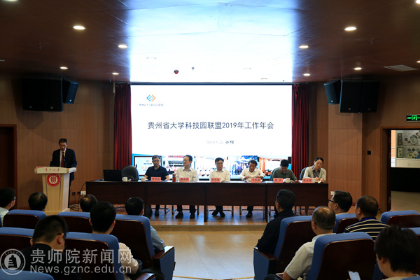 本网讯 5月24日,贵州省大学科技园联盟2019年工作年会在贵州大学国家大学科技园212会议室举行。贵州省科技厅副厅长安守海、科技部高新司原副司长耿战修、贵州大学副校长李军旗、华中科技大学科技园总经理与中国大学科技园联盟秘书长常学武,贵州省科技厅成果转化与区域创新处处长熊庆、副处长陈颖,省教育厅科技与研究生处副处长朱玉婷出席会议。贵州省大学科技园联盟理事长单位贵州大学国家大学科技园、秘书长单位贵州师范大学国家大学科技园等11家大学科技园40余名代表参加会议。bat365官网大学科技园董事长陈仁华、副总经理王明带领大学科技园全体人员参加会议。